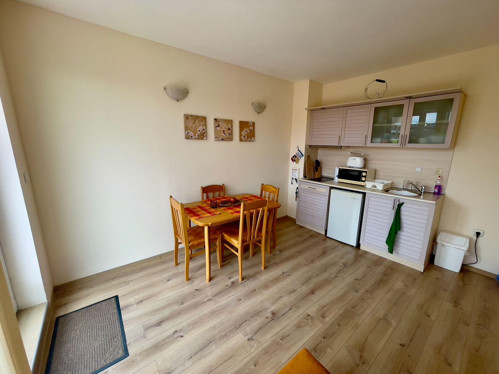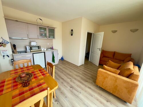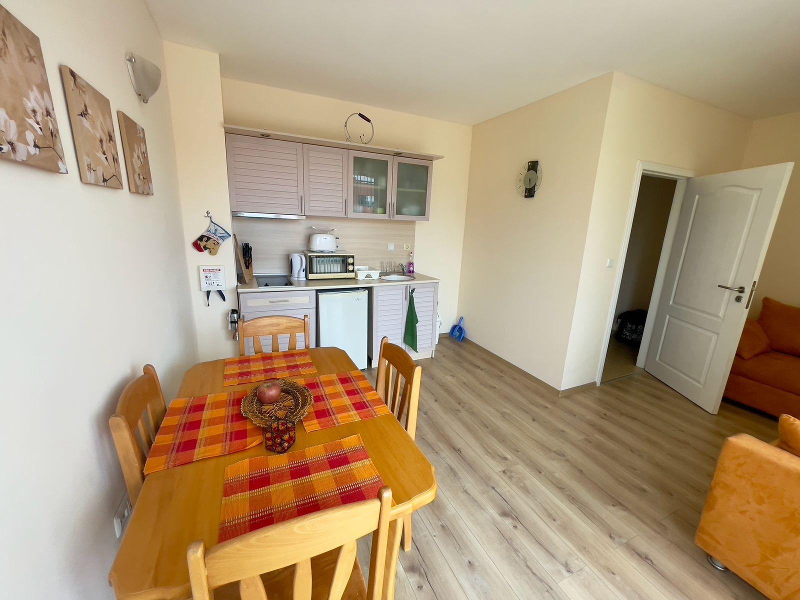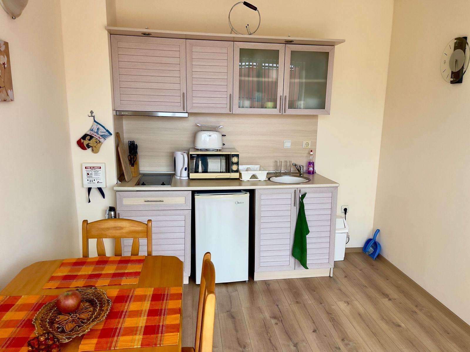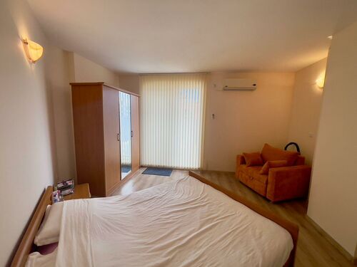 We offer for sale a tastefully furnished apartment in the southern, well-kept part of the Sunny Beach resort in an excellent location. There is developed urban and communication infrastructure nearby. The beach is about 300 meters away. The old town of Nessebar is 2 km away. The proximity of sandy beaches and restaurants serving Bulgarian cuisine makes this place unique and atmospheric. Burgas International Airport is 25 km away from the complex.