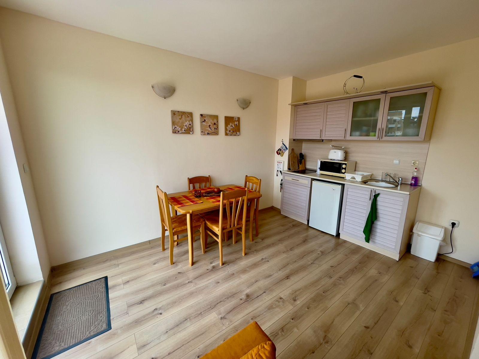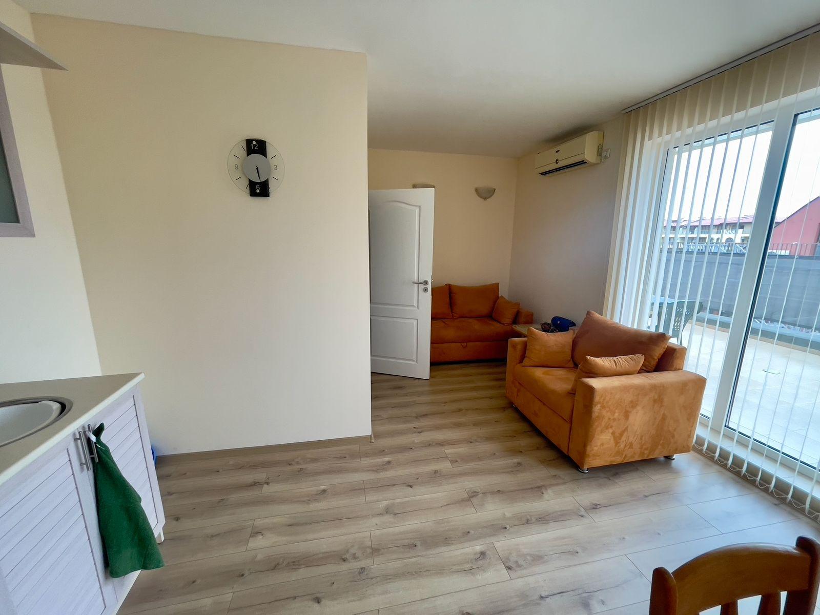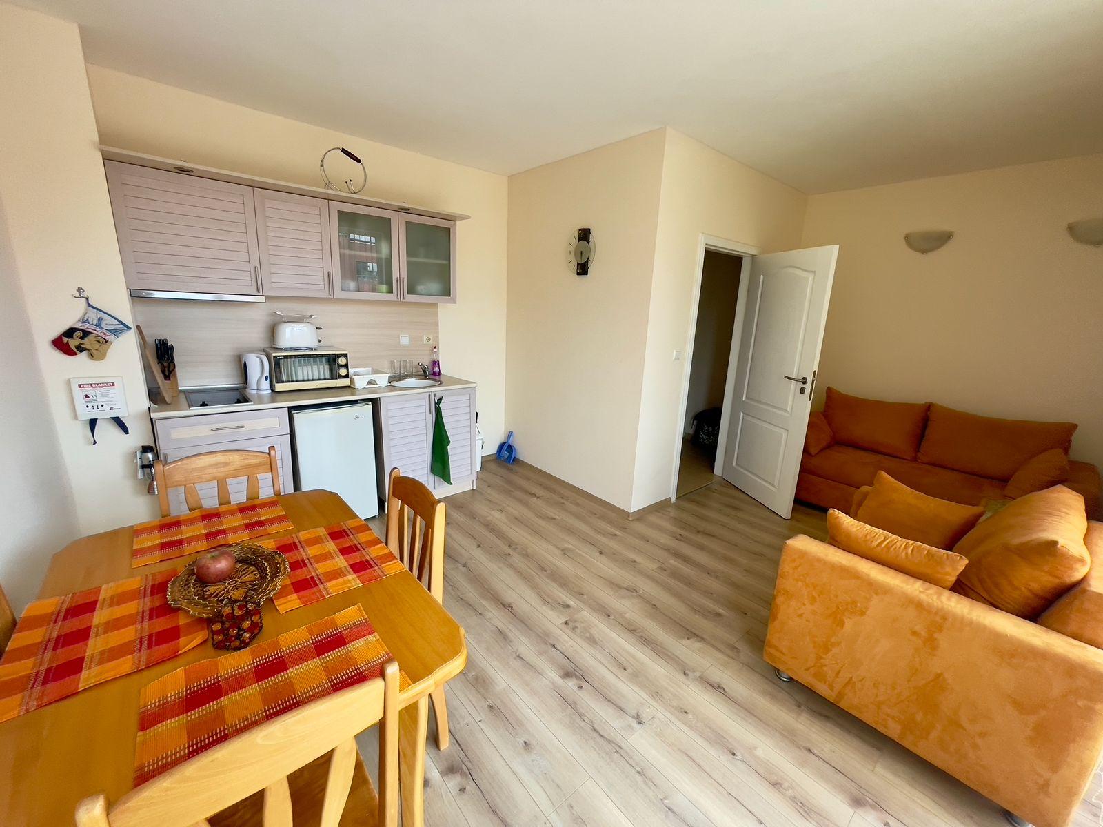 We offer for sale a tastefully furnished apartment in the southern, well-kept part of the Sunny Beach resort in an excellent location. There is developed urban and communication infrastructure nearby. The beach is about 300 meters away. The old town of Nessebar is 2 km away. The proximity of sandy beaches and restaurants serving Bulgarian cuisine makes this place unique and atmospheric. Burgas International Airport is 25 km away from the complex.