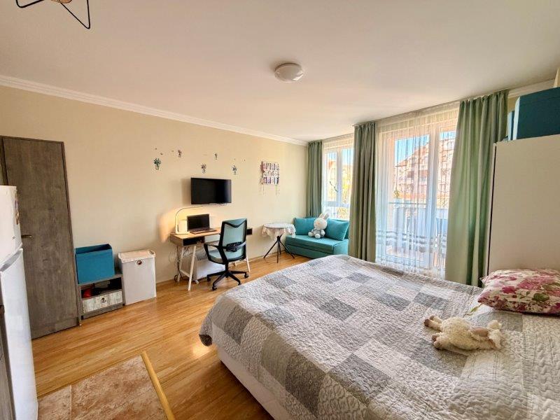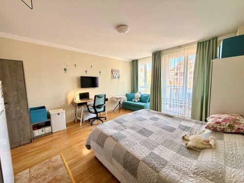 The studio has a total area of 39.52 sq.m. and offers a practical layout. It consists of one room combining kitchen, dining and sleeping areas, a balcony, and a bathroom with toilet and sink. This apartment is for sale furnished and equipped as shown on the photos and it is ideal for permanent living, holidays or renting out.