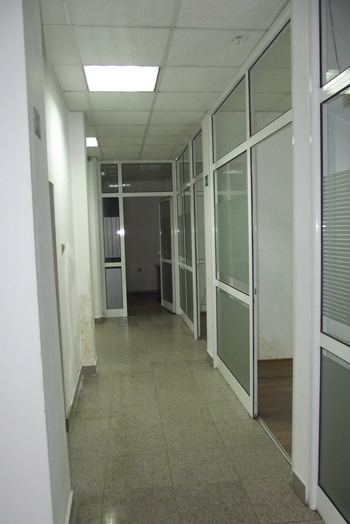 Spacious office area for rent situated in the center of a well-developed city in the Northwest of Bulgaria. The property is located in the center of the City of Montana just 3 minutes away from the main square, the town hall, park and busy streets. The place offers 196 sq.m. of covered area and is located on the ground floor of a solid building with three floors. It has direct access to the pedestrian area and the nearby street junction. Inside one can find plenty of open plan space together with six other premises and toilet. When you enter into the property you get through a short lobby which leads you into the main hall. This is an open plan space which is connected to a corridor that provides access to all other rooms. The property used to be a bank branch so the main hall was the waiting room for the clients and also held the cashier desks. Five of the remaining rooms were offices and one was a storage where the documentation and the vault used to be. The property is being offered for rent both as one piece and as several smaller parts which can be rented out separately. It is possible to divide the area in four parts and each of them can have its own entrance with two of these front doors facing the street junction and looking towards the pedestrian area and the remaining two offices can have doors towards the parking area situated at the back of the building. The property has local heating, running water and electricity. All bills are paid and cleared, so that the new tenants could have a clean, fresh start. The office area needs a bit of minor renovations as some of the old furniture is left inside and a new coat of paint here and there will make the place look great. With the abundance of shops and offices around, the main possibility for the property is to host another shop or office of a competitor. Montana, the place where this property is located, is a nice town which has good standard of living, is improving by the year and there are many domestic and foreign companies conducting activity here in various fields. The city is just about 90 minutes away from the national capital city Sofia and can be reached both via road a rail not only from Sofia, but also from many other parts of Bulgaria. Nice property with plenty of potential and good location looking for new tenants.