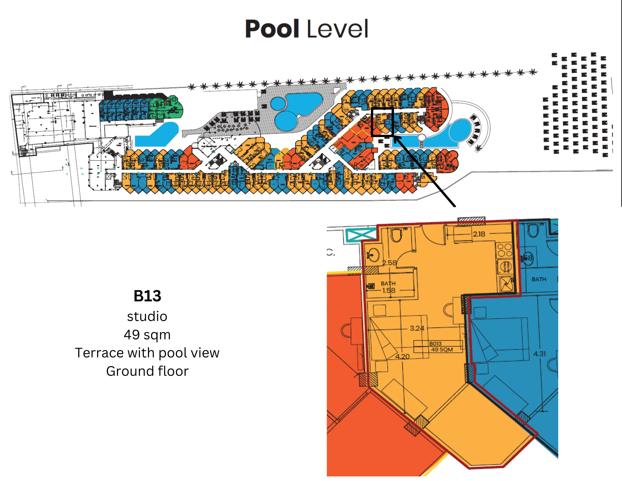 By the pool studio with private terrace in a beach resort
