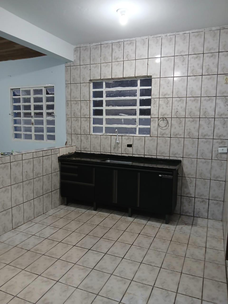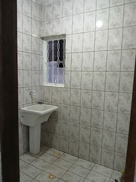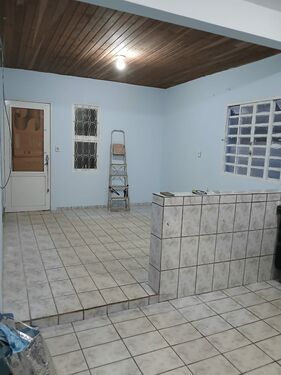 Piso Térreo: 1 quarto grande, 1 quarto pequeno, sala de estar, cozinha e área de serviço (lavanderia) coberta.