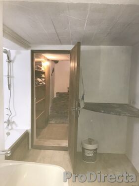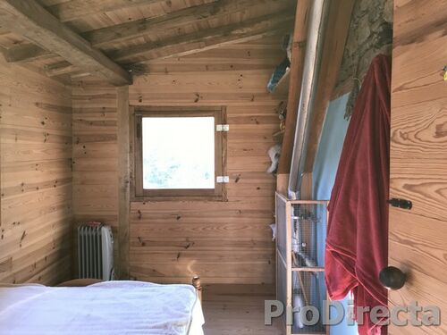 Outside a BBQ and bread oven are set into the old stone walls – there’s a little Love Seat too. There is a font for spring water, and, a short distance from the house, a wooden cabin for guests.