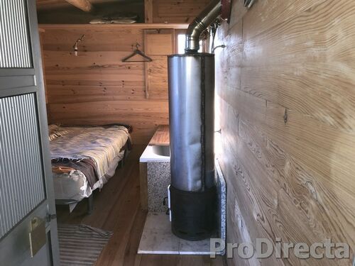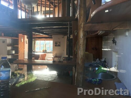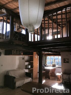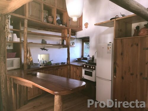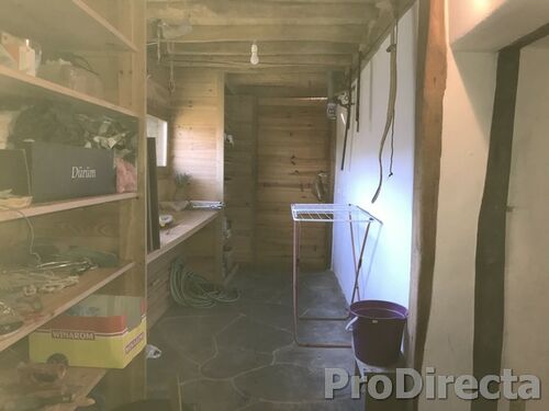 A wooden mezzanine has been added to give a second bedroom and more useable space; the kitchen area has plenty of worksurfaces and storage; there is a bathroom with shower and tub; there is a dressing room; the pipe work of the wood burning stoves run unobtrusively through the house to assist with winter heating; there is a workshop – all the things you need for rural living.
