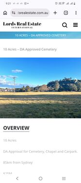 10 Acres – DA Approved Cemetery