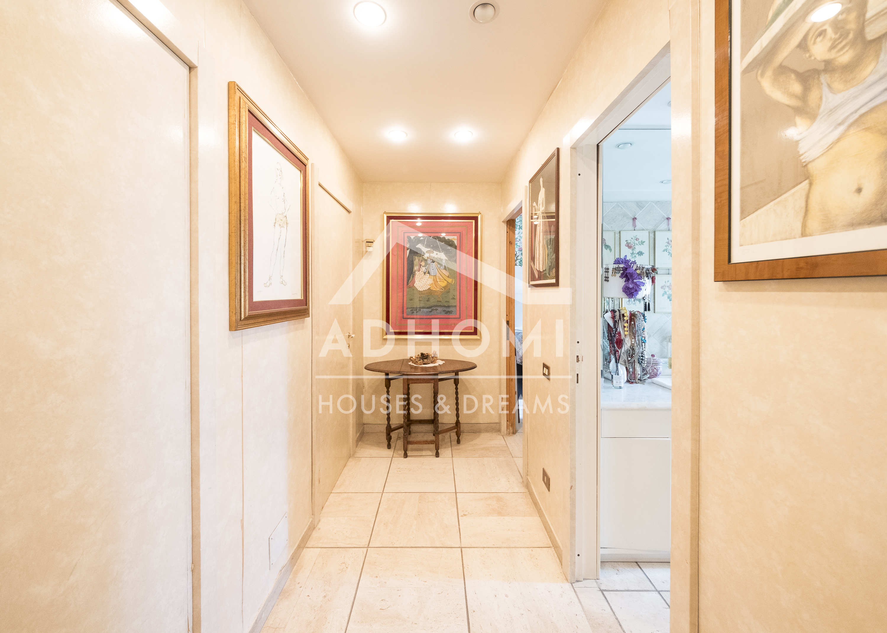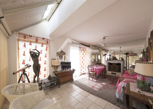 L'appartamento è composto da ingresso su ampio doppio soggiorno, dotato di tre porte finestre panoramiche, 3 camere, due bagni, piccola lavanderia, cucina abitabile, grande terrazza a livello con ulteriore soggiorno (come una dependance) con vetrate sulla terrazza.