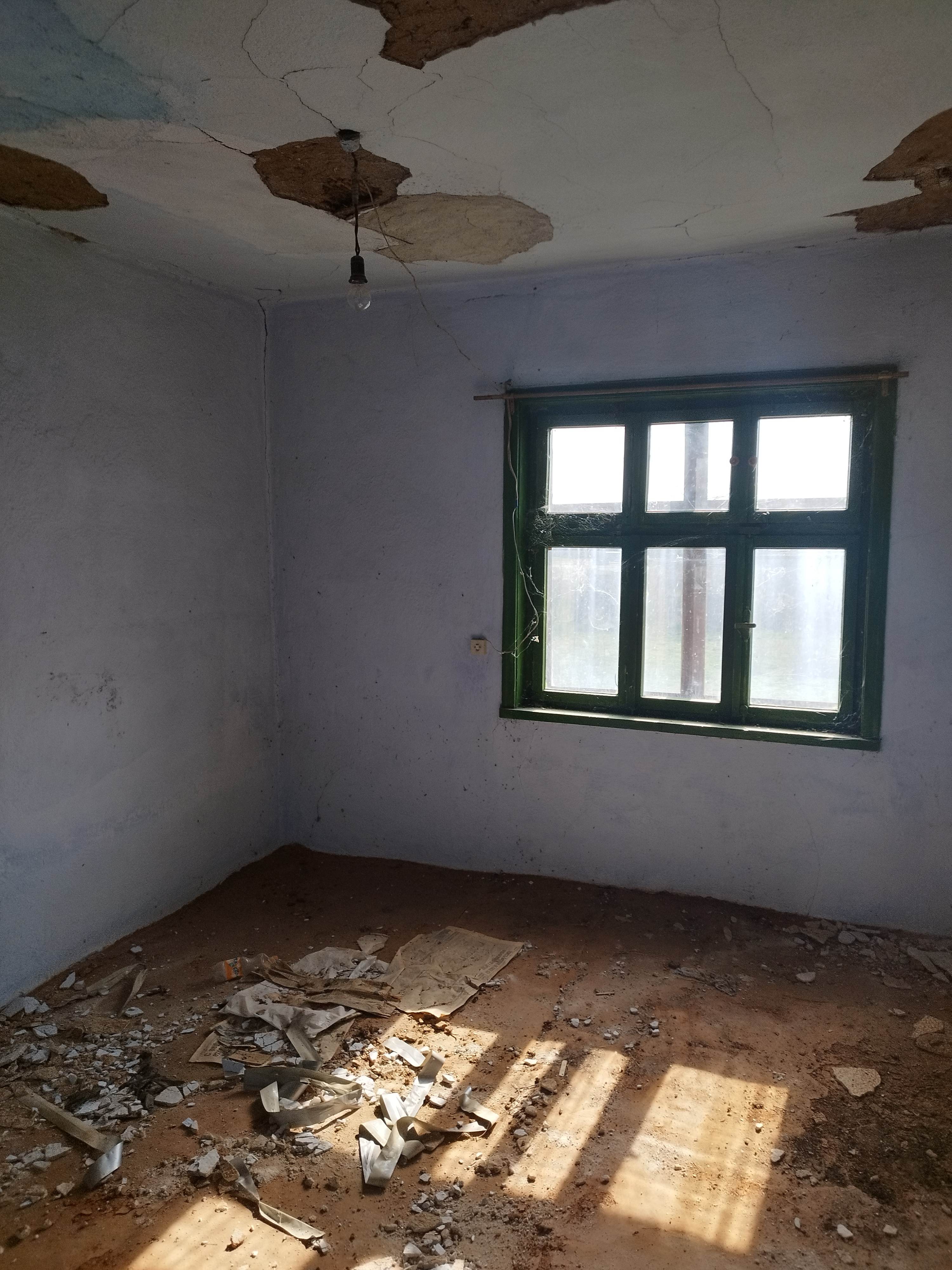 needs roof repair, new floors, plastering of walls and ceilings,