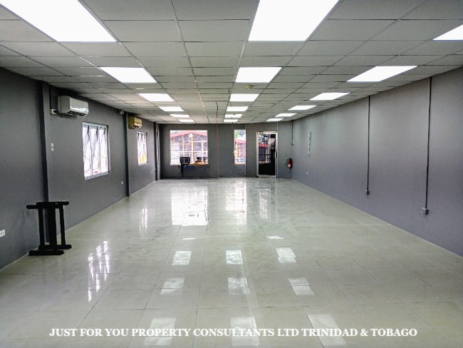 TT$7000 Neg This renovated upper floor commercial space ( over 1200 sq ft ) is conveniently located in a prime commercialized area in San Fernando Trinidad. It contains an open layout; is tiled throughout; has AC ; possess one enclosed office; two washroom facilities; an emergency exit; CCTV security cameras & adequate water storage; this property has road frontage; is easily accessible within walking distance to all amenities & is being leased partially furnished or unfurnished ;
