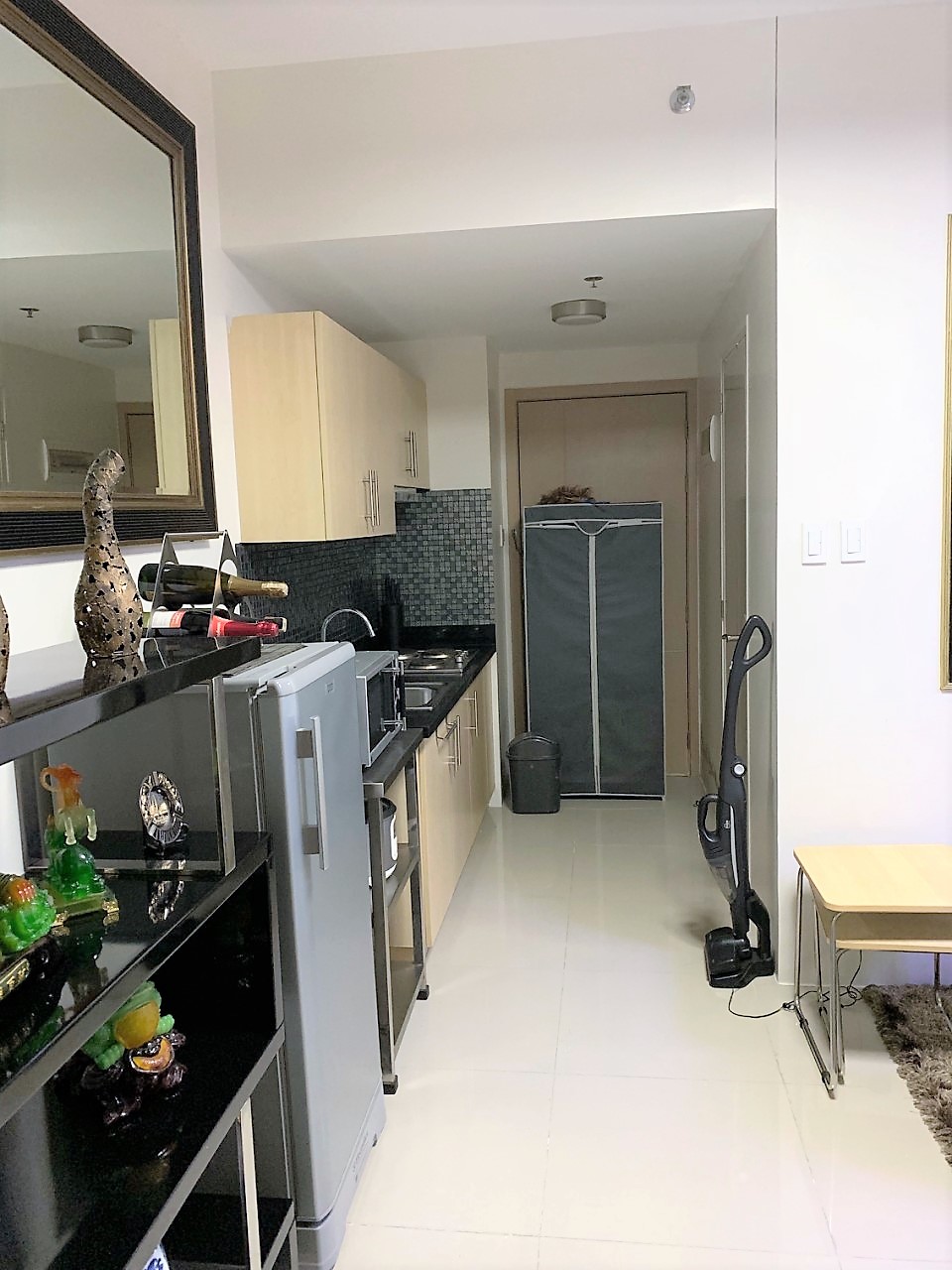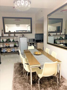 2 Bedrooms with Balcony facing amenities. Floor Area: 50 sqm. Fully Furnished with internet/WiFi, cabled TV, hot/cold shower, a large split-type air conditioner, tower fan, washing machine