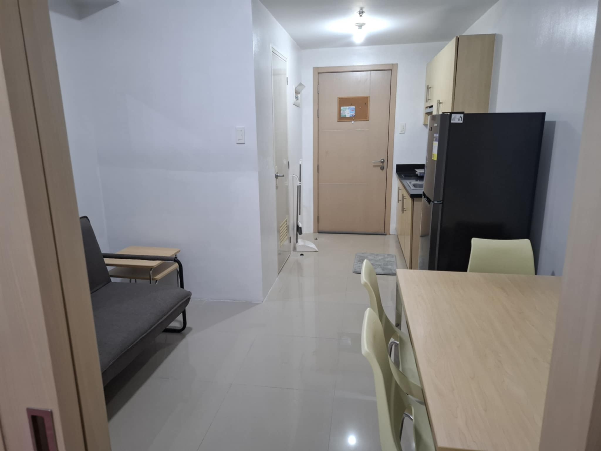 1 Bedroom. Floor Area: 25.52 sqm. Fully Furnished newly repainted with brand new inverter aircon, inverter refrigerator, microwave oven, shower heater, induction stove, sofa bed, double bed
