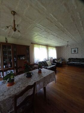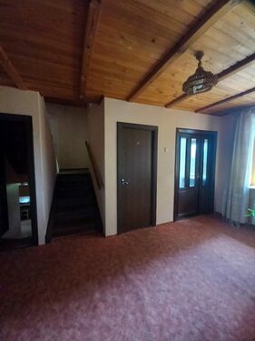 The house has a kitchen, pantry, living rooms, bedrooms, bathroom with toilet and separate toilet. Basement and attic. Central heating with a wood-burning boiler. Next to the house there is also a two-story outbuilding, there are 2 garages.