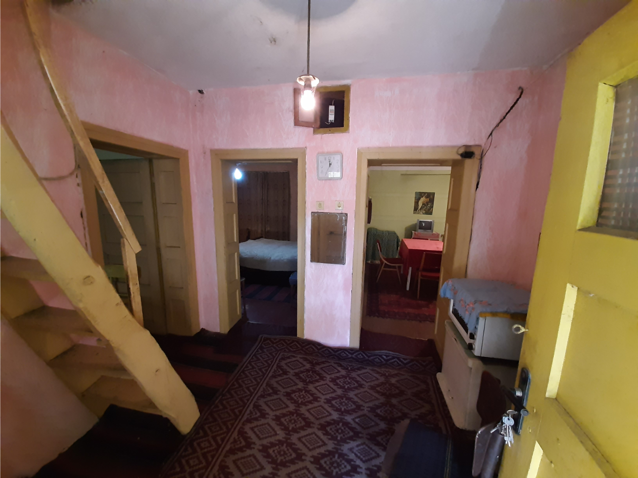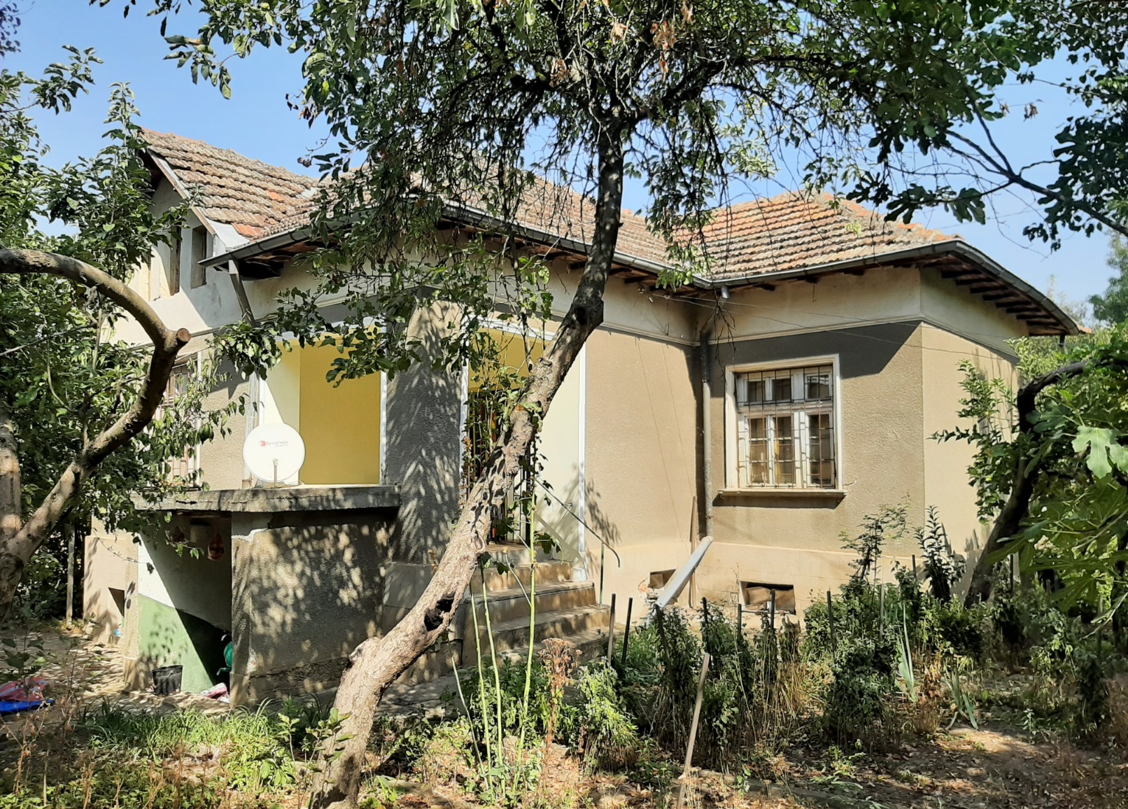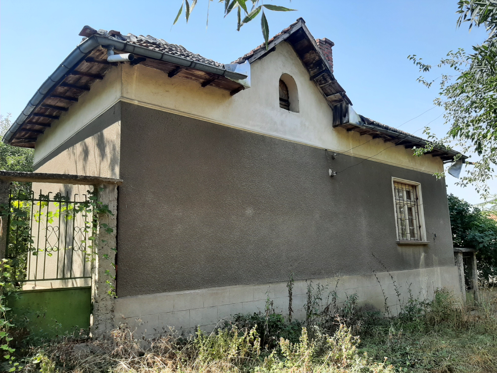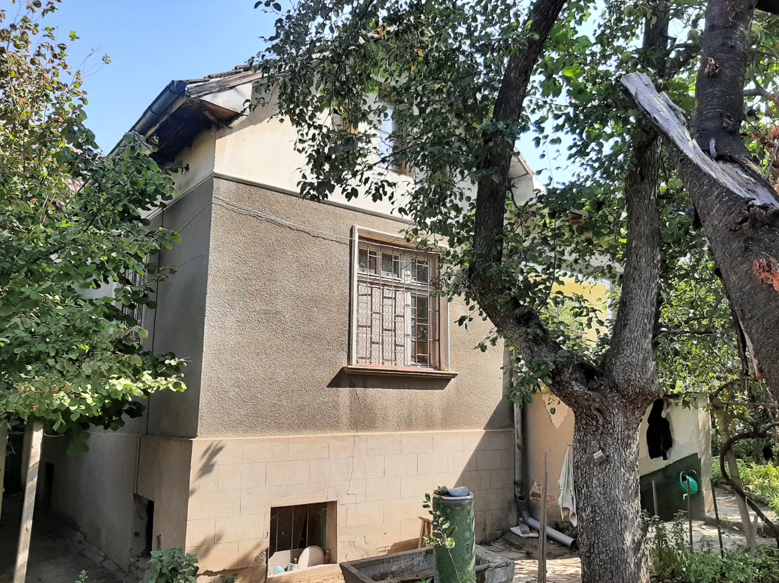 Old country house with plot of land, barn and outbuildings situated in a quiet area within the limits of a big village 50 km northeast of Vratsa, Bulgaria. The property consists of a two-storey house, barn, workshop, storage building and land. The real estate is located at a quiet side street within the limits of the village about five minutes away by foot from the center, bar, grocery store and bus stop. The house has two floors connected by both internal and external stairs. The ground level holds corridor, kitchen, basement and storage room with shower. The second floor has corridor living room and two bedrooms. Next to the house are the storage building and the workshop. The barn is a little bit further away. Near the workshop are the small gate for pedestrians and the big gate for vehicle access into the property. The yard is spacious and holds several fruit trees, some vines, etc. It borders two streets but currently there is no access to the road at the back although one can be made. Some of the houses around are inhabited while others are empty so the surroundings of the property are relatively quiet. The village where this house is situated is one of the biggest and well developed in the area providing several shops and bars, regular bus transport to the nearest town, it also has school, kindergarten, church, park, etc. There is a river passing through the outskirts so those who like fishing can enjoy their hobby at the river banks. The village has good phone and internet reception and is surrounded by farming land. There are no industrial facilities or factories for miles so one can enjoy here plenty of clean, fresh air, peace and quiet. Old rural property with lots of potential for further development.