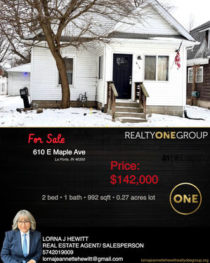 This cozy 2 bedroom, 1 bathroom ranch home in LaPorte, IN is located in a desirable east end neighborhood with convenient access to local amenities, schools, parks, and shopping. The home features a one-car garage, a full unfinished basement, and a large pantry offering ample storage space. Inside, you’ll find a spacious kitchen and a formal dining room, perfect for everyday living or entertaining. Recent updates include a newer roof, windows, and flooring, adding value and peace of mind for future owners. This property presents a great investment opportunity or starter home in a well-established LaPorte neighborhood.