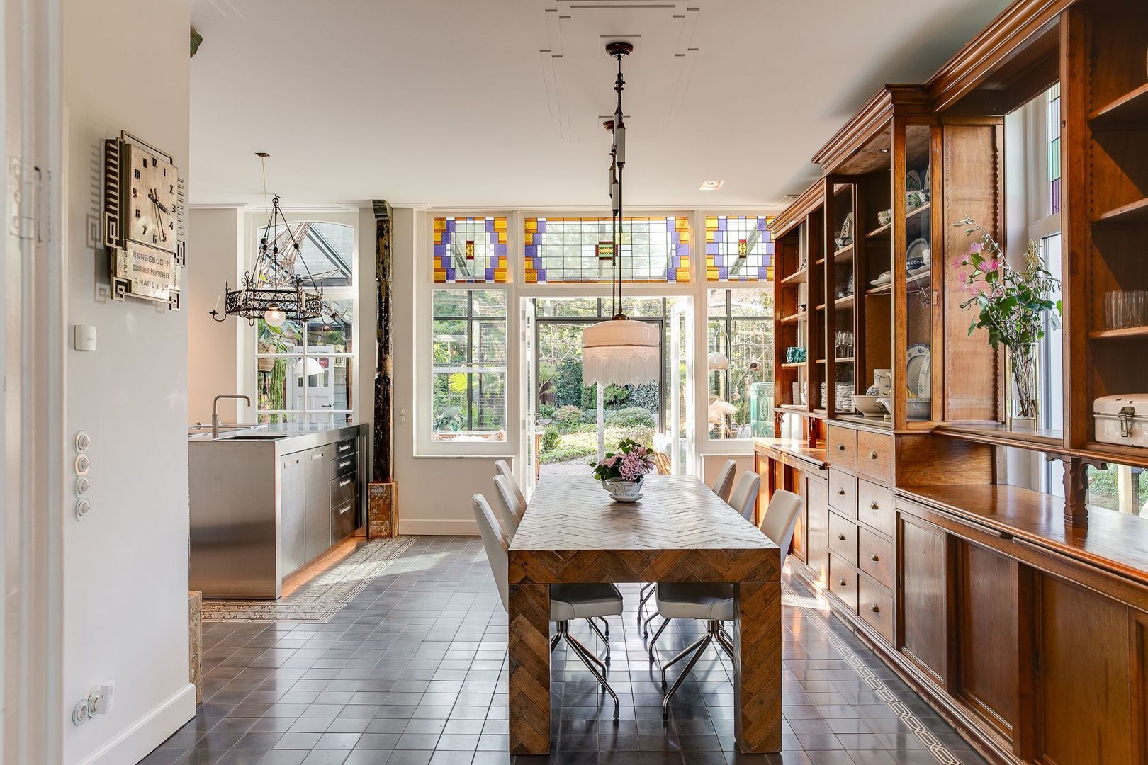 In het hart van Bergen (NH) staat deze uitzonderlijk duurzame, vrijstaande villa uit 1912, volledig gerenoveerd met behoud van authentieke details en voorzien van modern wooncomfort. Originele elementen zoals Portugese tegels, glas-in-loodramen en paneeldeuren worden harmonieus gecombineerd met luxe afwerkingen en hoogwaardige materialen. De royale woonkeuken met designapparatuur vormt samen met de lichte woonkamer en de indrukwekkende serre van 55 m² het kloppend hart van de woning.