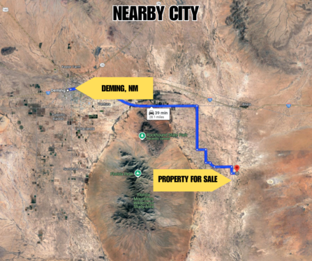 The land sits about 28 miles from Deming, NM, and around 3 hours from Tucson, AZ. You’ll have road access through a dirt road that’s maintained by the county, so getting there is no problem. The land has a gentle slope and offers desert views, distant mountains, and beautiful sunsets.