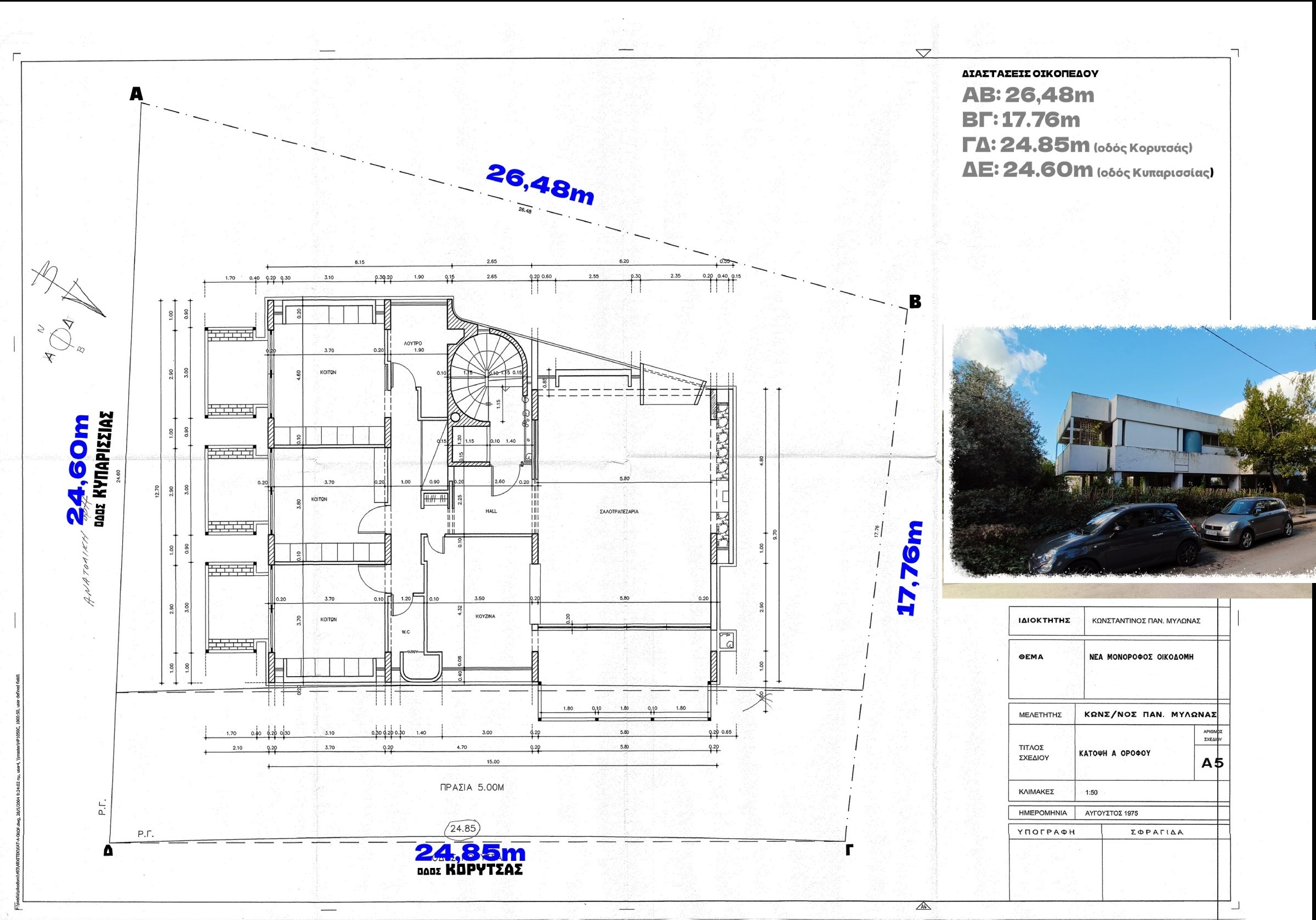 Corner detached house in Kifisia, Street name: Koritsas 21 kifisia 14561. - Detached house of 1977 - A house that, although built in 1977 ... its modern design, classifies it as one of the most beautiful houses belonging to the Athenian Modernism of 1970΄. It was made by a known civil engineer and the distinguished architect, Mr. Elias Gounaropoulos.