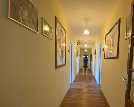 285 m2 of living space, located in a cul-de-sac. The lino floors are "imitation parquet".