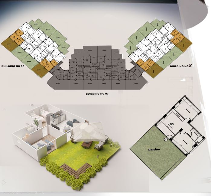 π 2-bedroom apartment 133 sq. m. on the ground floor with a private garden of 48 sq. m. and a view of the pool in the Magawish area