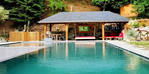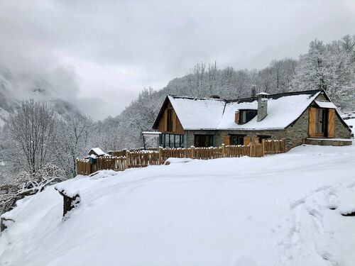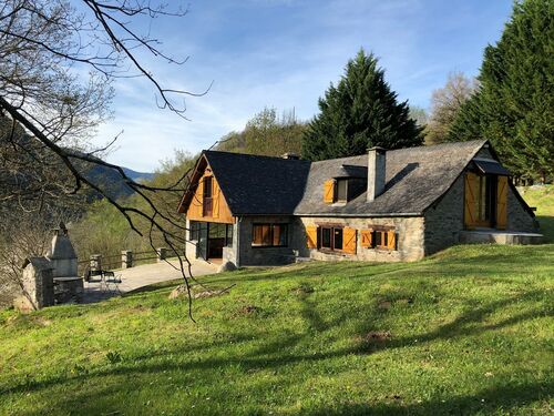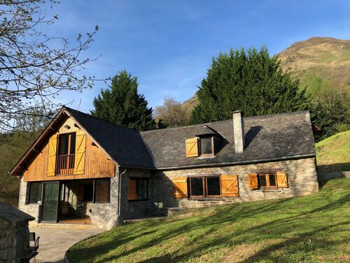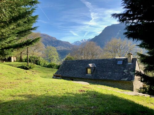 Nestled in a green setting in an authentic and popular mountain d'Ossau valley in the Pyrenees, at the start of the most beautiful hiking sites and 15 minutes from the ski slopes, this property is an extremely rare property in the area.. Set in a wooded park of more than 1,5 hectares enjoy an exceptional panoramic view of the valley and surrounding mountains from its heated infinity pool. The old barn converted into a residential house has a spacious and warm interior of 155 m² with high-end equipment that can accommodate up to 10 people thanks to its 3 atypical cosy interior cabins, a 15 m² bedroom with terrace to which is added a sofa bed, two bathrooms, and superb terrace with plunging views.