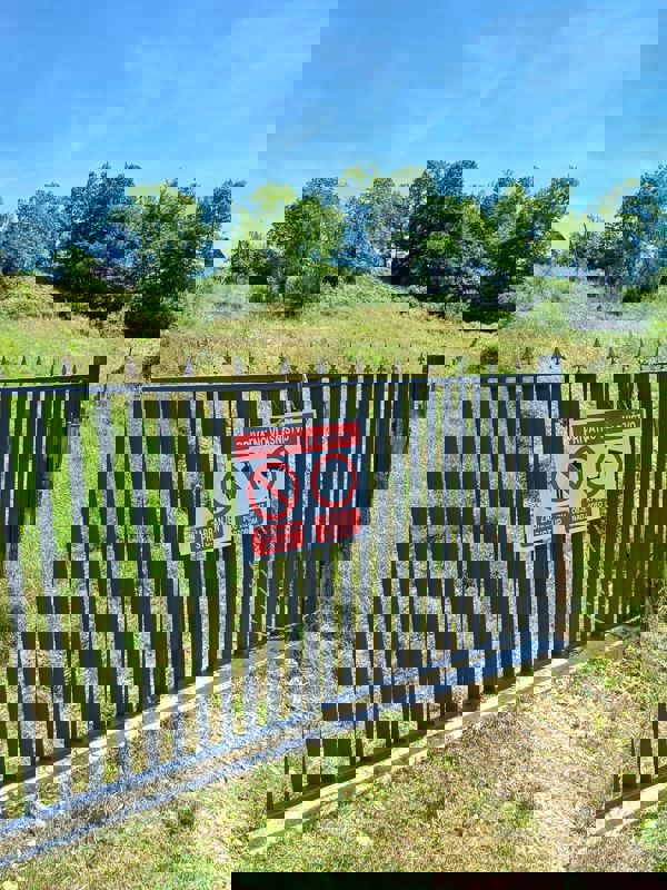 *Security & fencing: Massive steel entrance gate and 500+ meters of acacia posts prepared for perimeter fencing