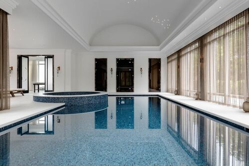 Het landgoed heeft een opmerkelijke, hoogwaardige renovatie ondergaan, waarbij klassieke Engelse landhuisarchitectuur is gecombineerd met moderne luxe en comfort. Binnen beschikt de woning over ruime woonruimtes, een verfijnde eetkamer, een bibliotheek, een bioscoop en een volledig uitgeruste wellnessruimte met zwembad, sauna, stoombad en fitnessruimte. De bovenverdiepingen bieden zes luxe slaapkamers met en-suite badkamers, waaronder een indrukwekkende master suite.