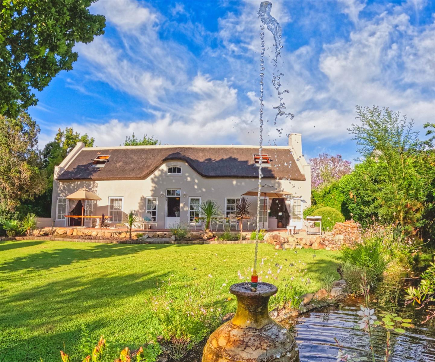 Nestled at the edge of the Greyton Nature Reserve, Tortoise Brook is a rare thatched Cape Dutch homestead where privacy, tranquility, and the beauty of nature converge. Just a two-hour drive from Cape Town, this serene sanctuary offers pristine surroundings to refresh body and soul. Put your feet in your own small, crystal-clear stream, breathe the clean, fresh air, and let nature nurture and revitalise you in one of South Africa’s most desirable villages.