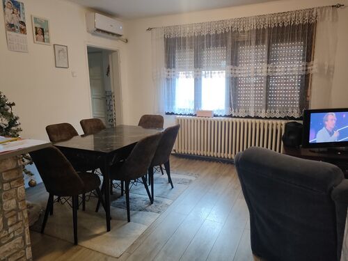 For sale, a family house with a plot area of ​​845m2. A single-storey house of recent construction made of solid material with an area of ​​90m2. Above one part of the house there is a high attic that offers you the option of additional living space. The house is insulated from all sides and has automatic ventilation ) has central heating with solid fuel, the option of heating and cooling with two inverter air conditioners (currently the cheapest type of heating). The carpentry is wooden but in good condition, the entrance door is PVC with a German profile mosquito net. The house consists of two corridors, bathroom, living room with dining room and kitchen, pantry, two bedrooms, one of which has an exit to the terrace. Among the auxiliary facilities, there is a renovated and completely insulated summer kitchen, which consists of two rooms and currently serves as an office. The garage from which you can reach the basement and the boiler room is about 30 m2 in which there is a furnace for central heating that is 4 years old. The garage also leads to another part of the yard, where there are four rooms intended for keeping animals, but they are not used for that purpose and consist of internal and external parts. In the extension, there is a garden of 412 m2, which is fenced on all sides. The approach to the house and the yard are concreted, there is also a well in the yard. Contact: +381628752119