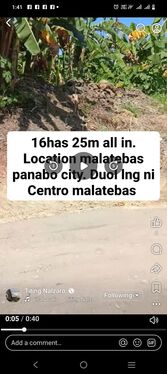 16has for sale 25m all in. Location malatebas panabo city. Over looking ang area. Near in national highway school. Along cemented road.