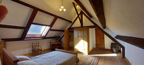 to the rear has views over the South facing garden and woodland. There is also a large 11KW Godin wood burner installed.