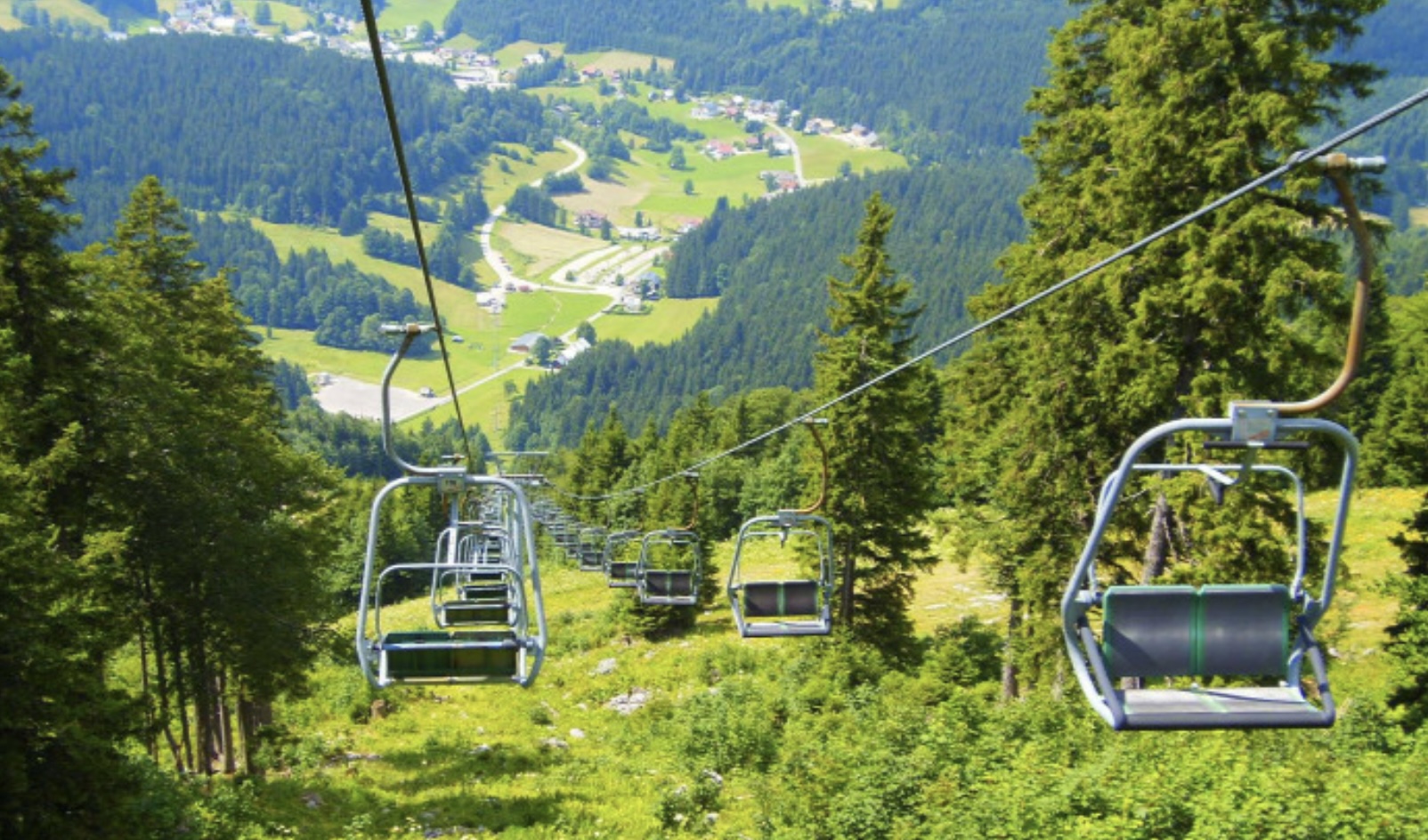 Ski slope, Mountain, Natural park, Forest, Lake, River.