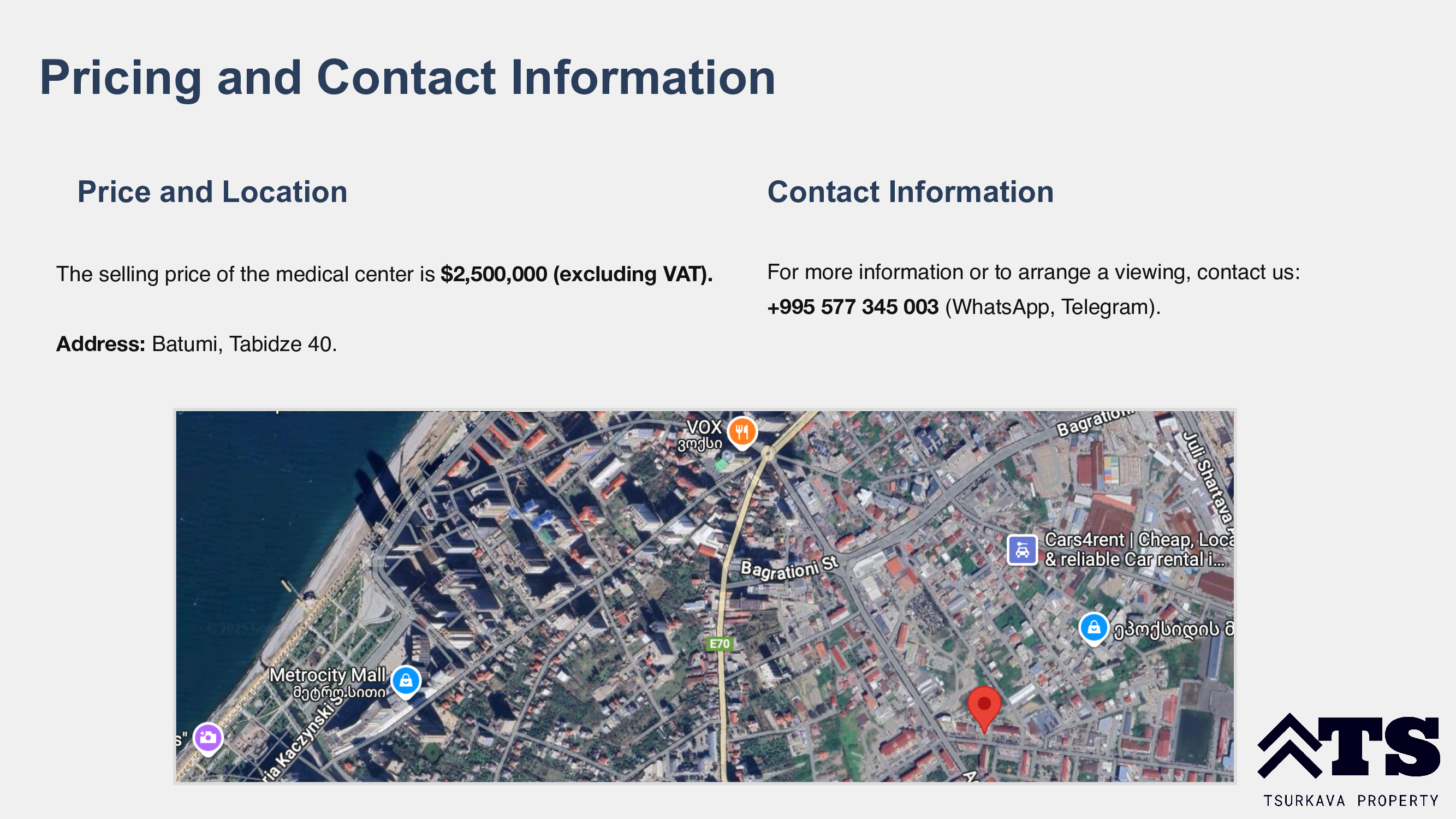 ✅ Unique property: No similar small medical centers exist in Batumi.