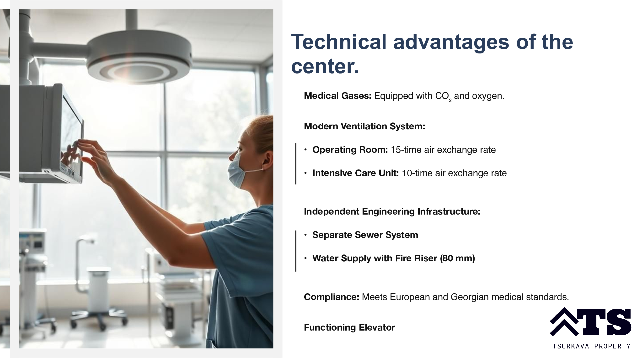 Equipped with medical gases (CO₂, oxygen).