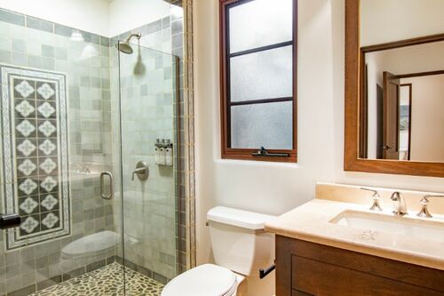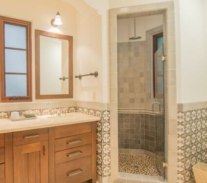 • Hand painted tiles throughout