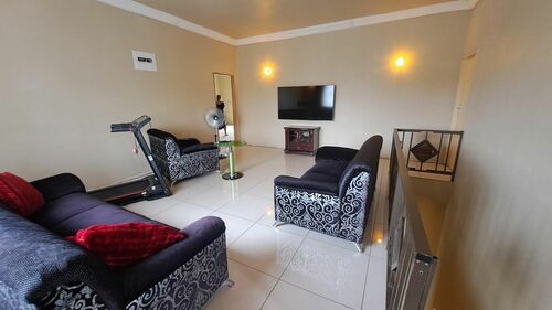 An elegant, immaculate, stunning freestanding Double Storey House in this sought after suburb of Northcroft awaits you. This is a walk-in mansion with 3 spacious bedrooms each with its own en-suite tiled through out with the choicest porcelain tiles. The kitchen is spacious with designer granite tops and a large dining granite table to sit around and enjoy family meals together. The ground level has it's own kitchen, lounge and dining room with a guest bathroom as well as a guest bedroom with its own spacious en-suite and dressing closet. The balconies at the rear and front are very spacious and makes relaxing with deck chairs a breeze. The property is walled around and access is through motorized gates with secure parking space for 4 vehicles. Must be viewed to appreciate the beauty of this property. Call me now for an exclusive viewing appointment