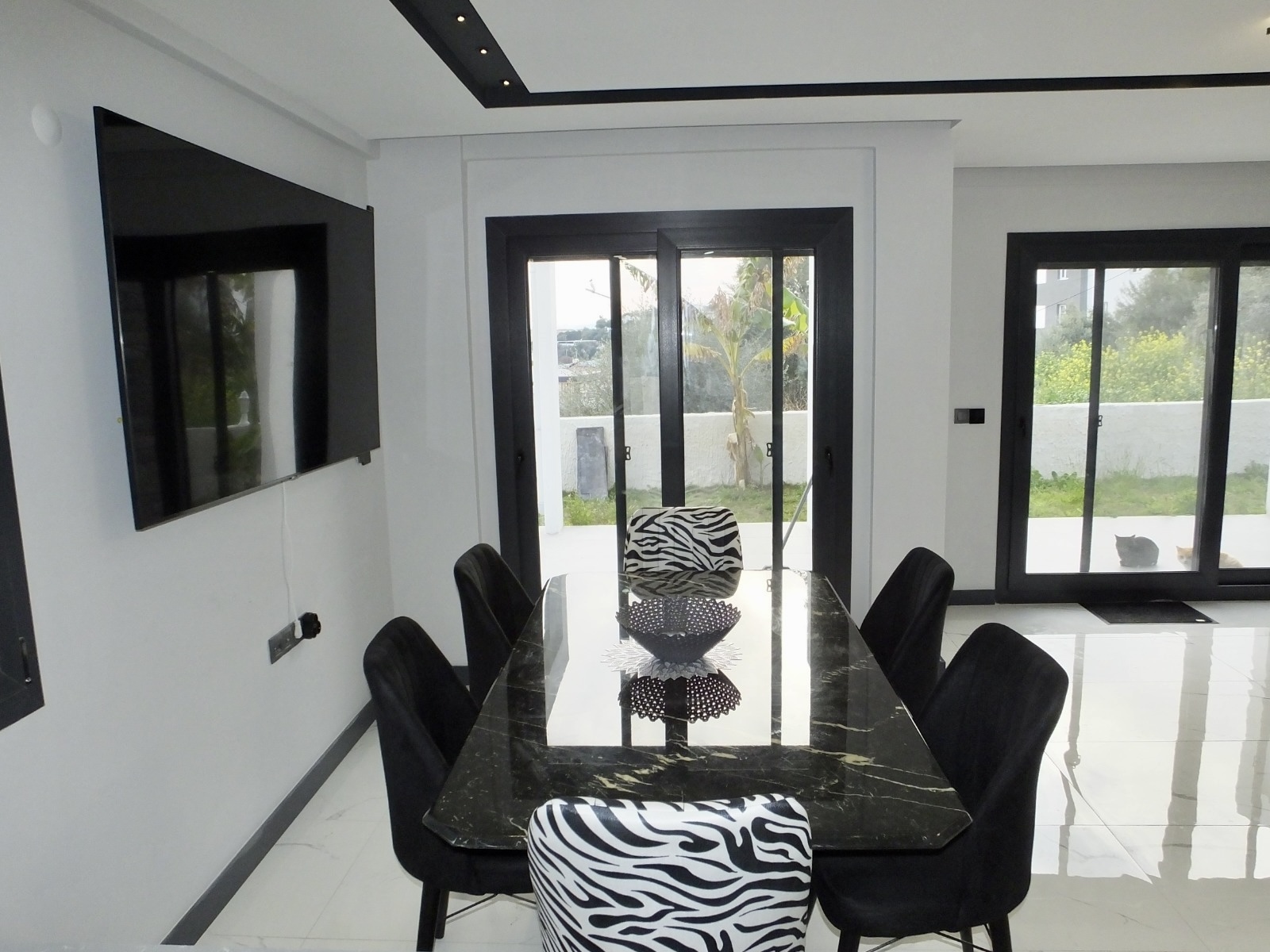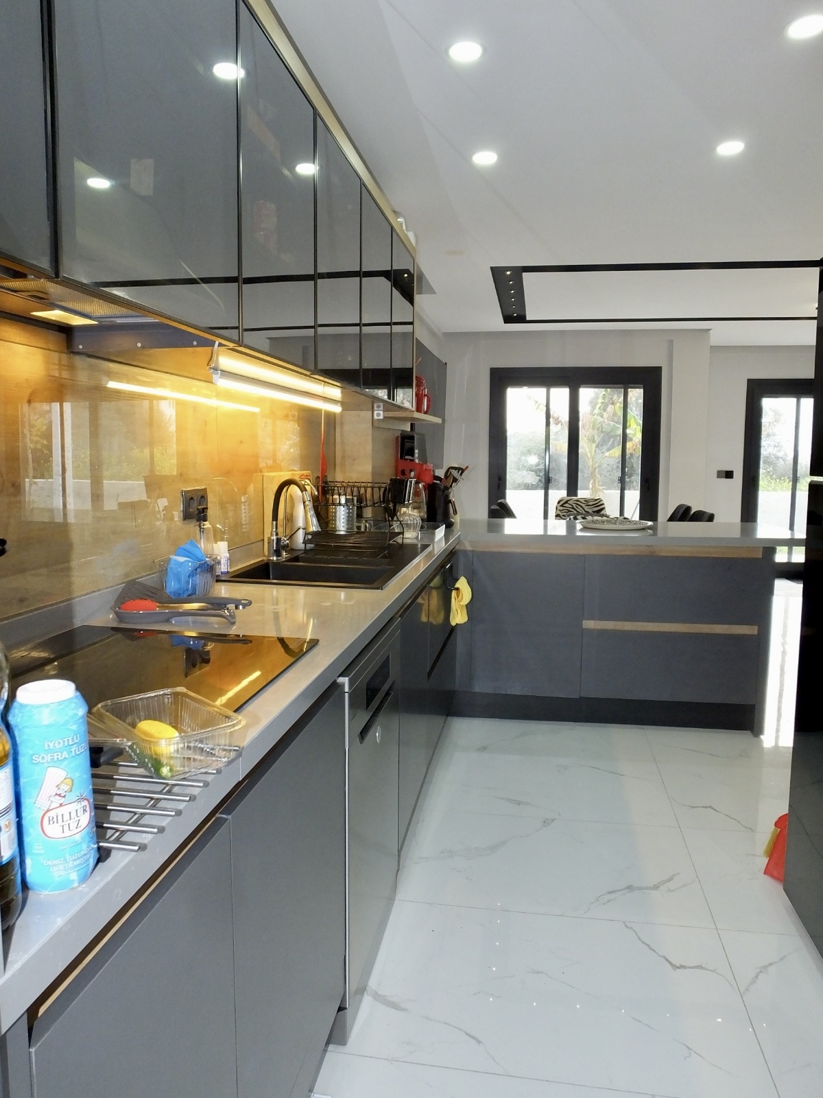 Beautiful fully detached modern villa located in the heart of Kusadasi in the prime location of ladies beach district Benefiting from elevated views and situated in a quiet friendly residential neighbourhood and only 5 mins drive from the port/harbour, town centre and marina 800m to nearest beach.. Smart home Ring doorbell and security system Basement storage room with 2x1 tonne water tanks and pump Underfloor heating Aircon to both levels