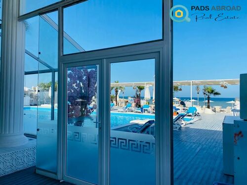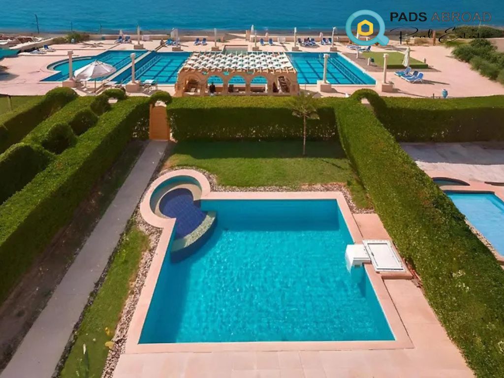 → Residents enjoy exclusive access to a private sandy beach with clear turquoise Red Sea waters perfect for relaxation and water sports.