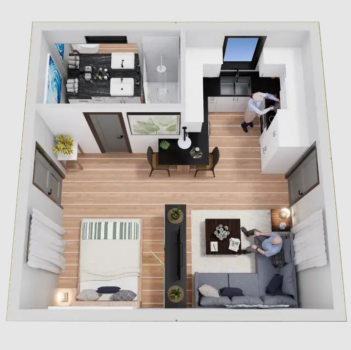 The Casita is designed with simplicity and efficiency in mind. As a result of our patented, innovative manufacturing process, our Casita is able to be installed much faster than most traditional homes. The Casita comes standard with a full kitchen and bathroom, as well as plenty of living space which is perfect for a couch & bed or whatever you envision! In addition to the appliances, our Casita also comes equipped with all the necessary utility hookups such as water, electricity, internet, and sewage which means setup is a breeze & you are ready to live in your new home.