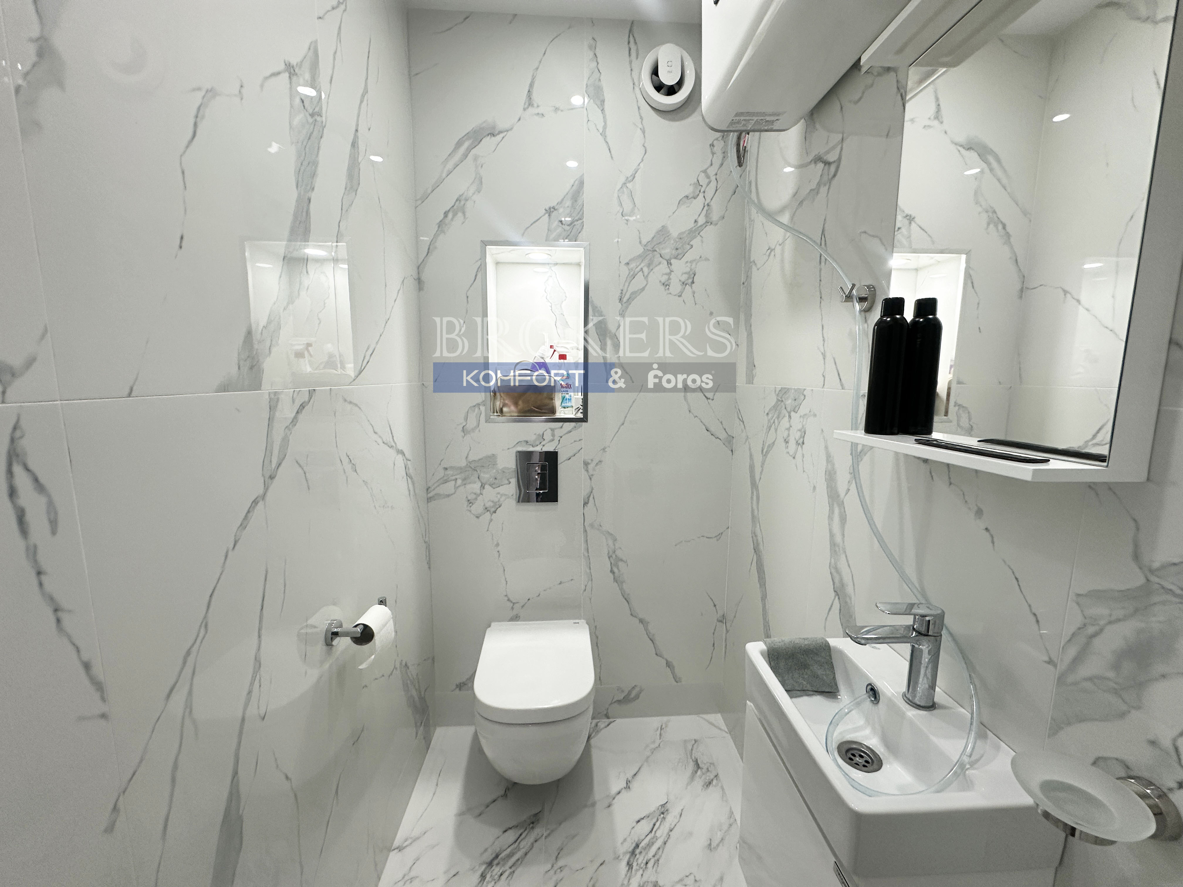 The interior is stylishly designed in soft pastel tones and fitted with high-end electrical appliances. Each room is equipped with air conditioning. The property has been finished with great attention to detail, using modern, high-quality materials and premium sanitary equipment.