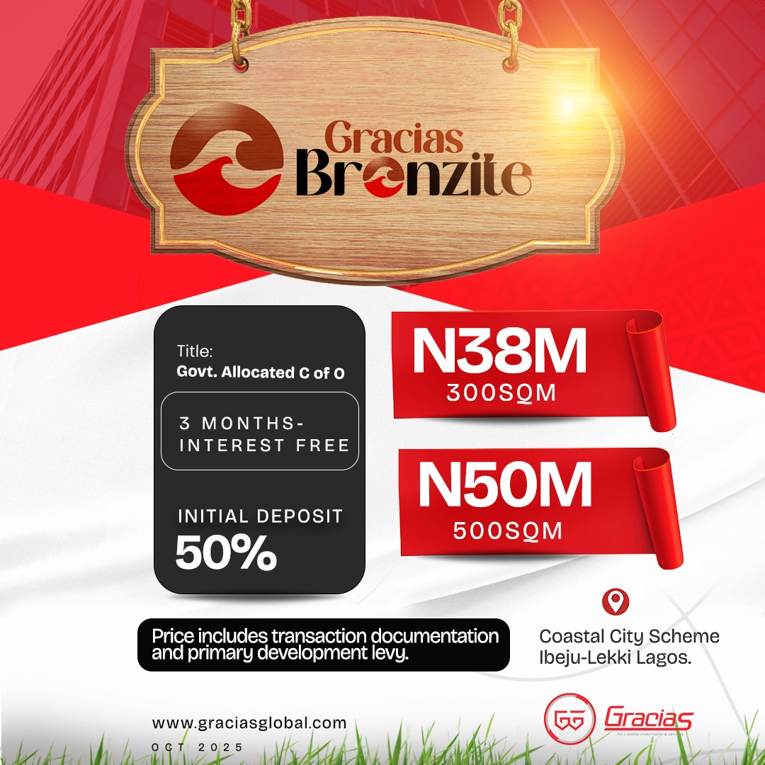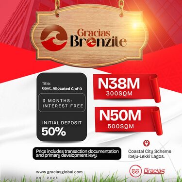Begin your journey to land ownership with *Gracias Bronzite*, a prestigious coastal estate located in the thriving Ibeju-Lekki axis. Offering serviced plots with a Government-allocated Certificate of Occupancy (C of O), this is your chance to secure prime real estate in one of Lagos’ most sought-after locations.