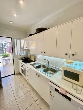 Die Immobilie verfügt über 2 Schlafzimmer, ein Bad, eine Küche mit Zugang zur Terrasse, einen großzügigen Wohnbereich mit Essbereich sowie eine gepflegte, große Terrasse.