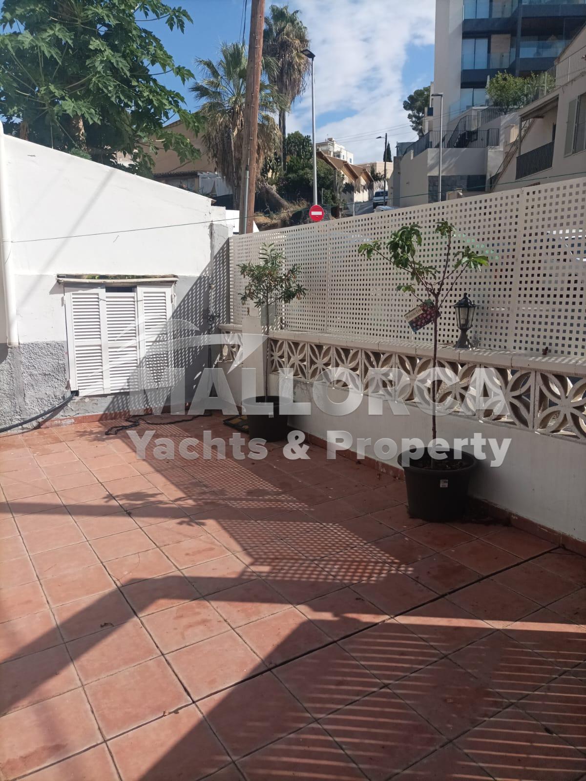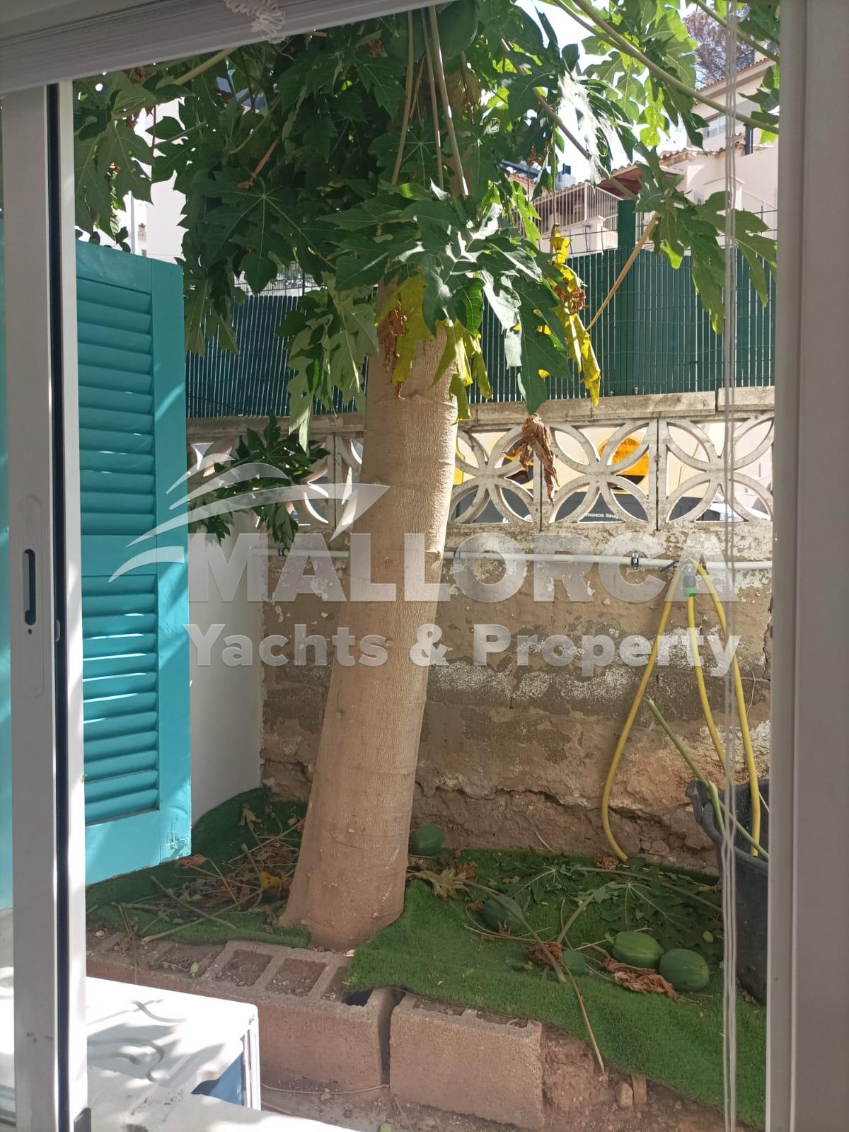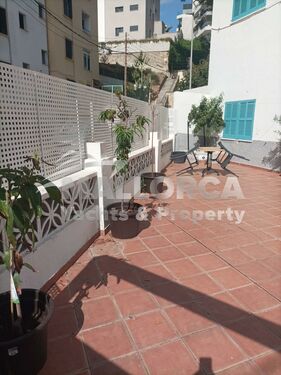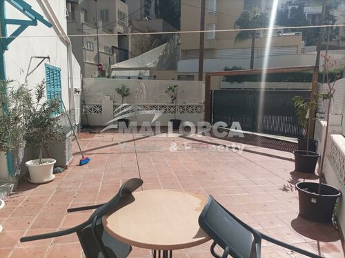 The highlight is the spacious private gated terrace, featuring olive and fruit trees, dining furniture, and secure perimeter fencing. The terrace also provides secure parking for two cars, a rare benefit in central Cala Major. This combination of outdoor space and parking makes the apartment practical and attractive for tenants seeking both comfort and convenience.