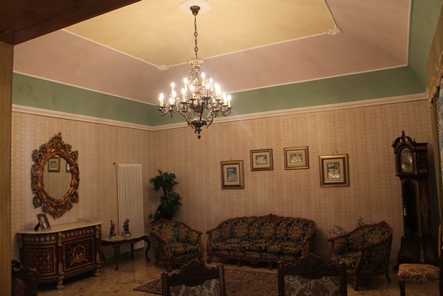 The ground floor with entrance from Via Dante is divided into three rooms - a garage of 30 square meters, a warehouse of about 25 square meters and a residential area consisting of 2 square meters, a room of 18 square meters, a basement of about 2 square meters , a bathroom of 3.5 square meters and a large hall of 25 square meters corresponding to the first floor from Via Bellini.