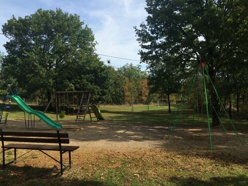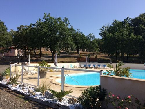It comprises 15 solidly built bungalows scattered over a 3.5 hectare wooded estate and includes a big heated pool, a fully-licenced bar, a pizza ‘café’, a shop and various playgrounds and petanque sites. The owners have their own 2-bedroomed bungalow .