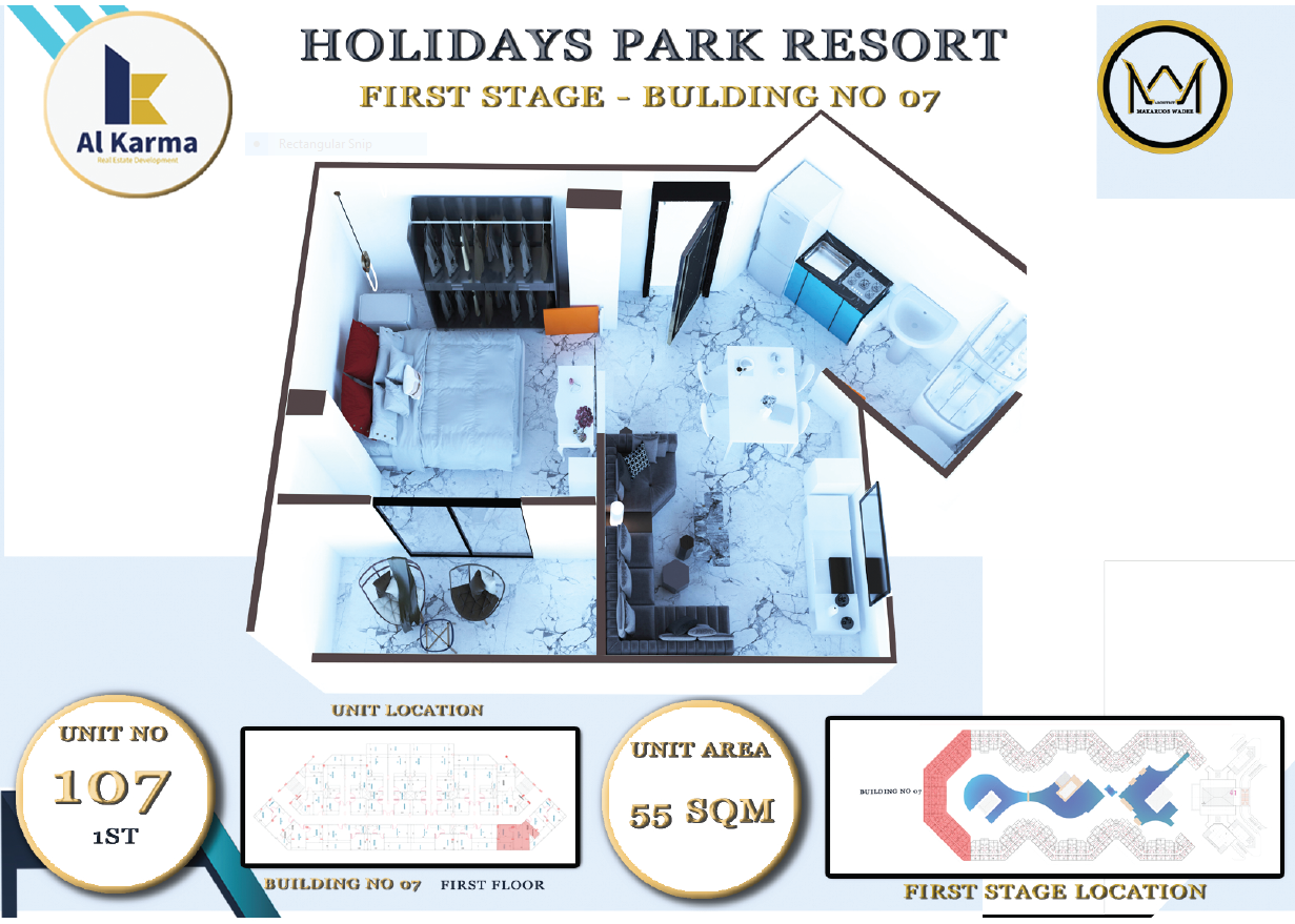 With a total area of 45,000 square meters, Holiday Park Resort is the largest project of its kind in Hurghada, only 20% of the area (9000 square meters) is built up with buildings. 80% (36,000 square meters) free for you with magnificent facilities.