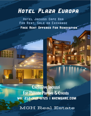 HOTEL PLAZA EUROPA SURVIVE PACKAGE DEAL WITH LIVE AND WORK OPPORTUNITY TO LIVE IN STUDIO APARTMENT IN HOTEL PLAZA EUROPA CONDO AND WORK IN A COMMERCIAL CONDO SPACE NEXT TO POOL WITH CAFE AND JACCUZI AND OPTION TO BIILD A HIGH-END HOTEL AMENITIES SERVICES TO SERVE THE HOTEL RESIDENTS AND GUESTS OPTION TO DO BUSINESS AND GET RICH SCHEME BUY OR RENT . ALL OPTIONS ARE OPEN SOME PHOTOS ARE RENDERING. PLEASE SUBMIT ALL OFFERS TO navidhakakian@gmail.com OR WA: 212-518-6725