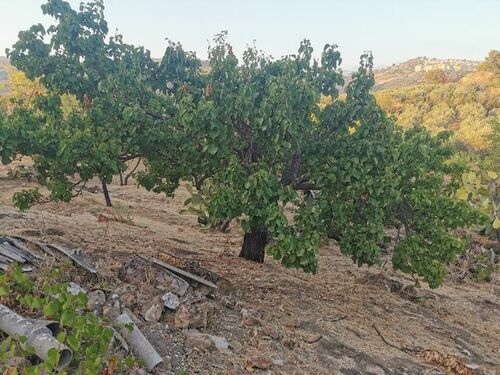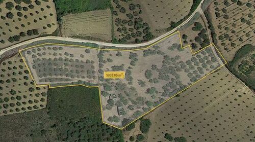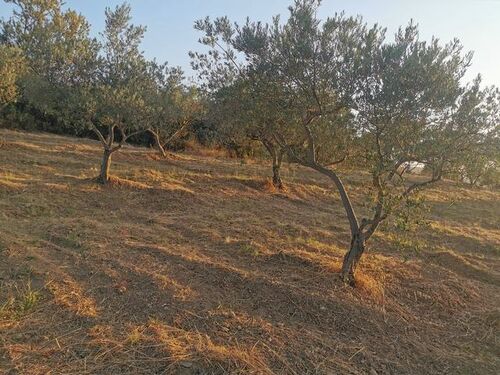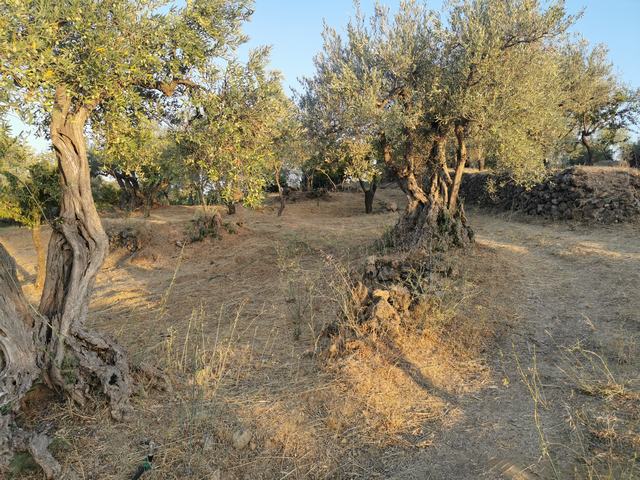 The land is almost flat and has an olive grove and fruit trees.