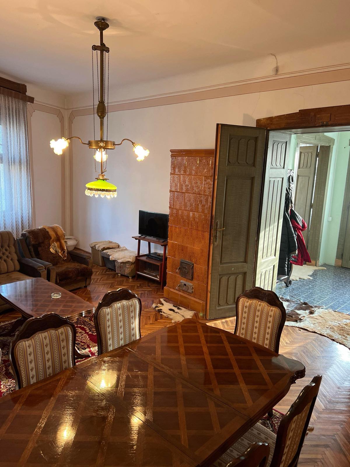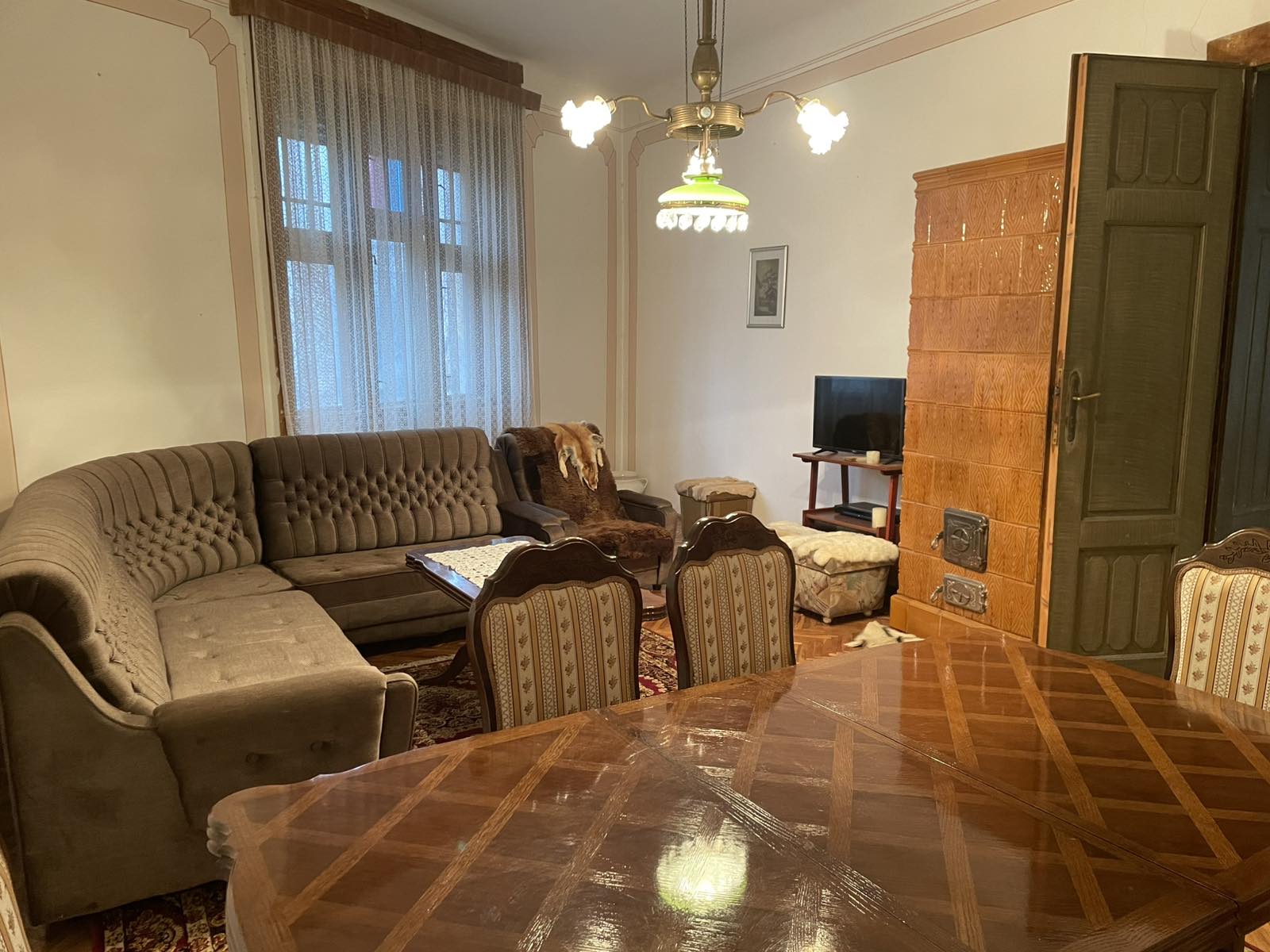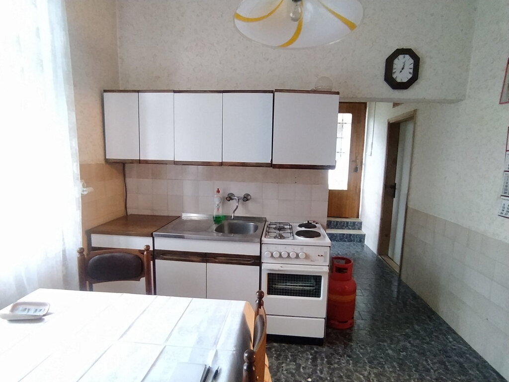 At the beginning of the Bajsko puta, a saloon-type house built of brick with an area of 138 m2 on a plot of 669 m2 is for sale. It consists of a large hallway, living room, two bedrooms, kitchen with dining room, bathroom with bathtub and storage room. The ceiling height is 3.5 m. The floors are parquet and tiles, and the carpentry is wooden. Heating with solid fuel, there are four mud stoves in the house. Heating is also possible with electricity, i.e. TA stove. Air conditioning. City water and sewerage, three-phase electricity with a two-tariff meter, and there is the possibility of connecting to gas.