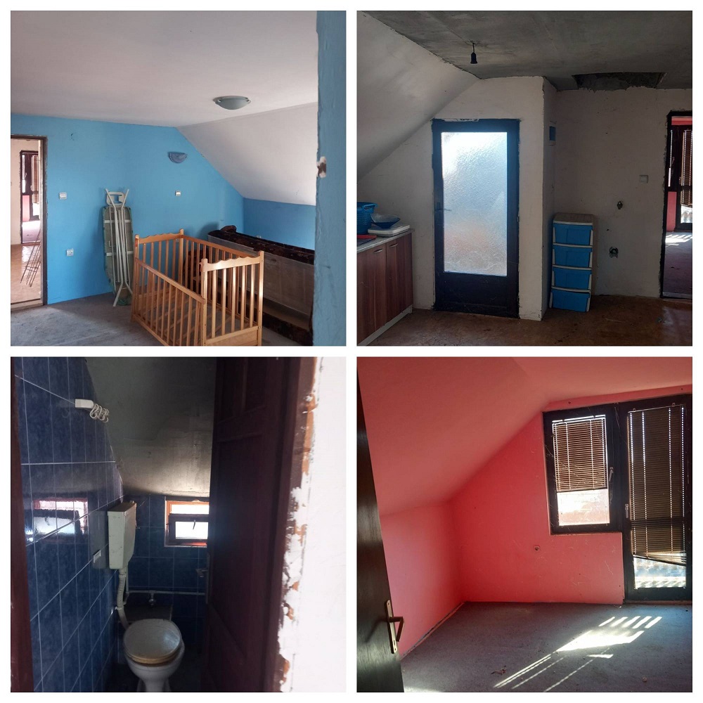 On the first floor there are two bedrooms, a small bathroom, a living room, a separate kitchen in another room...