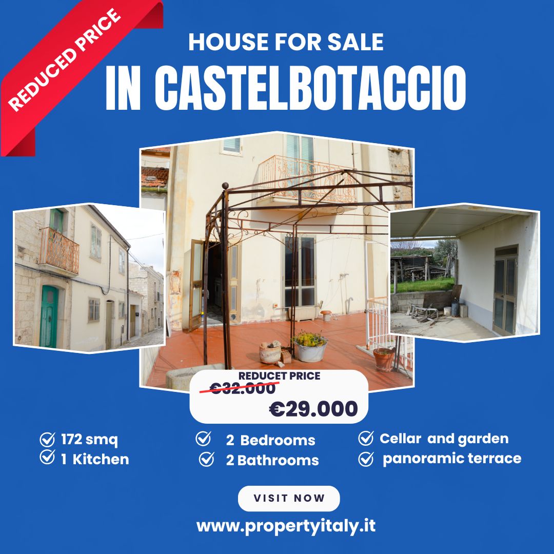 We offer for exclusive sale in Castelbottaccio, a charming 172 sq m (gross floor area) townhouse, spread over multiple levels and featuring double exposure, ensuring natural light throughout.