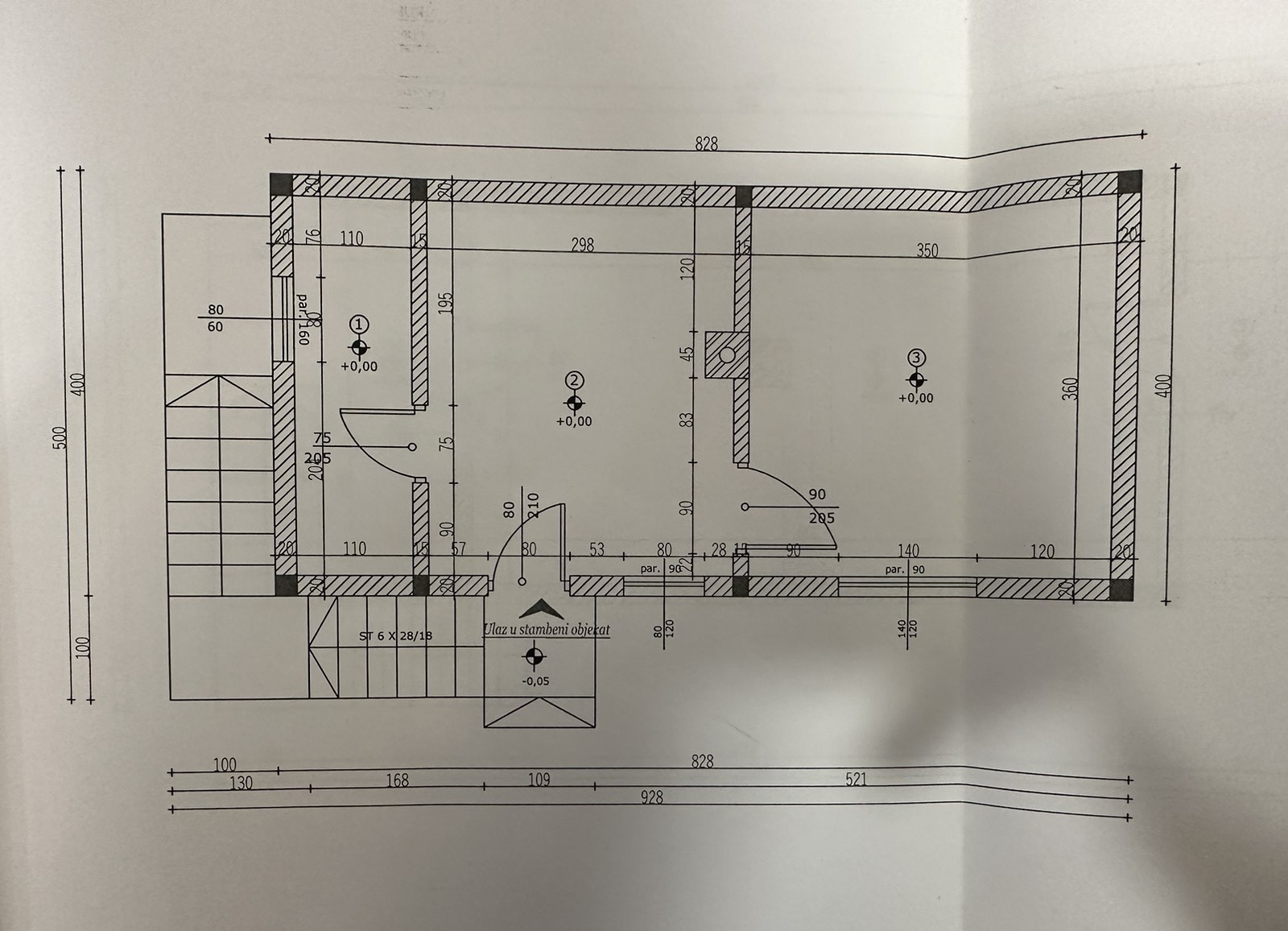 The area of ​​the plot is 22 ares, the gross area of ​​the PR+PK house is 71m2, the auxiliary building is 14m2 and the garage is 16m2 - all in total 101m2